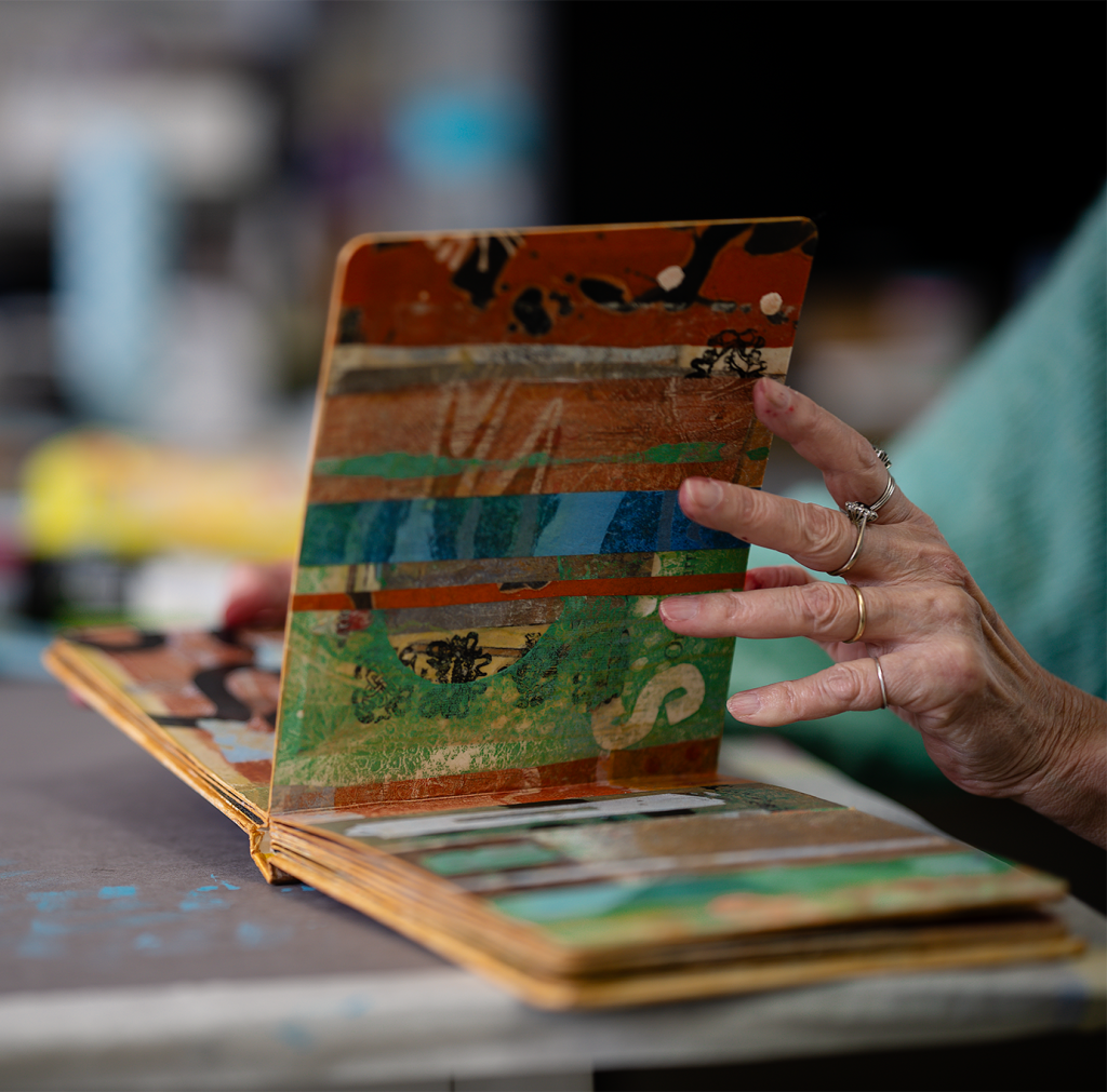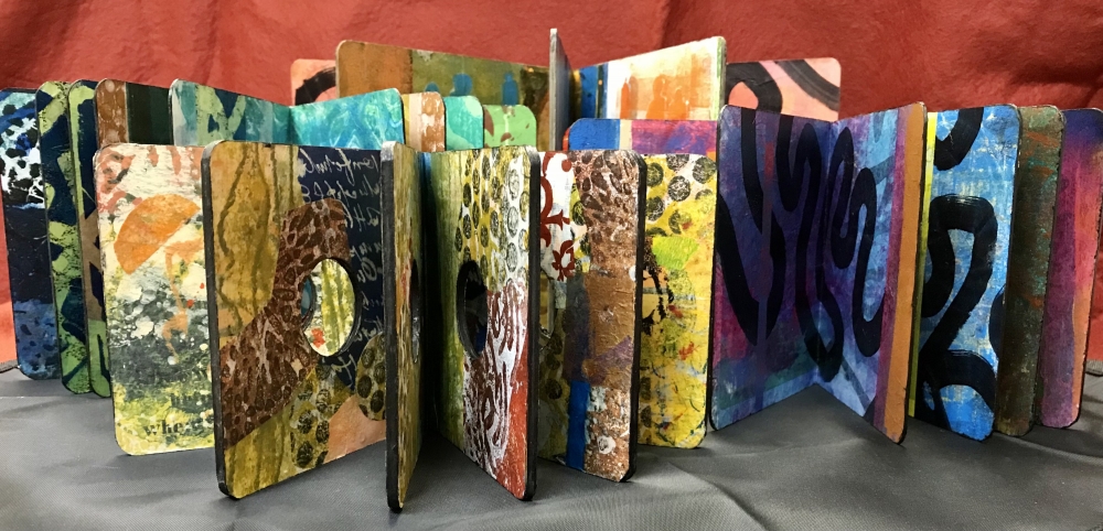 Hand-collaged tissue papers (individually gelli printed) with special features on board books.