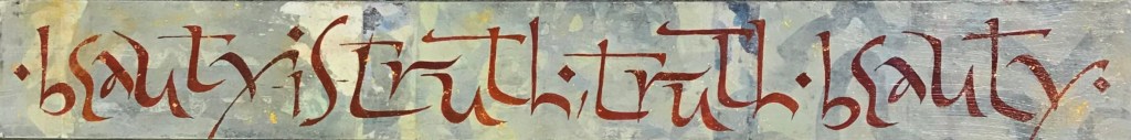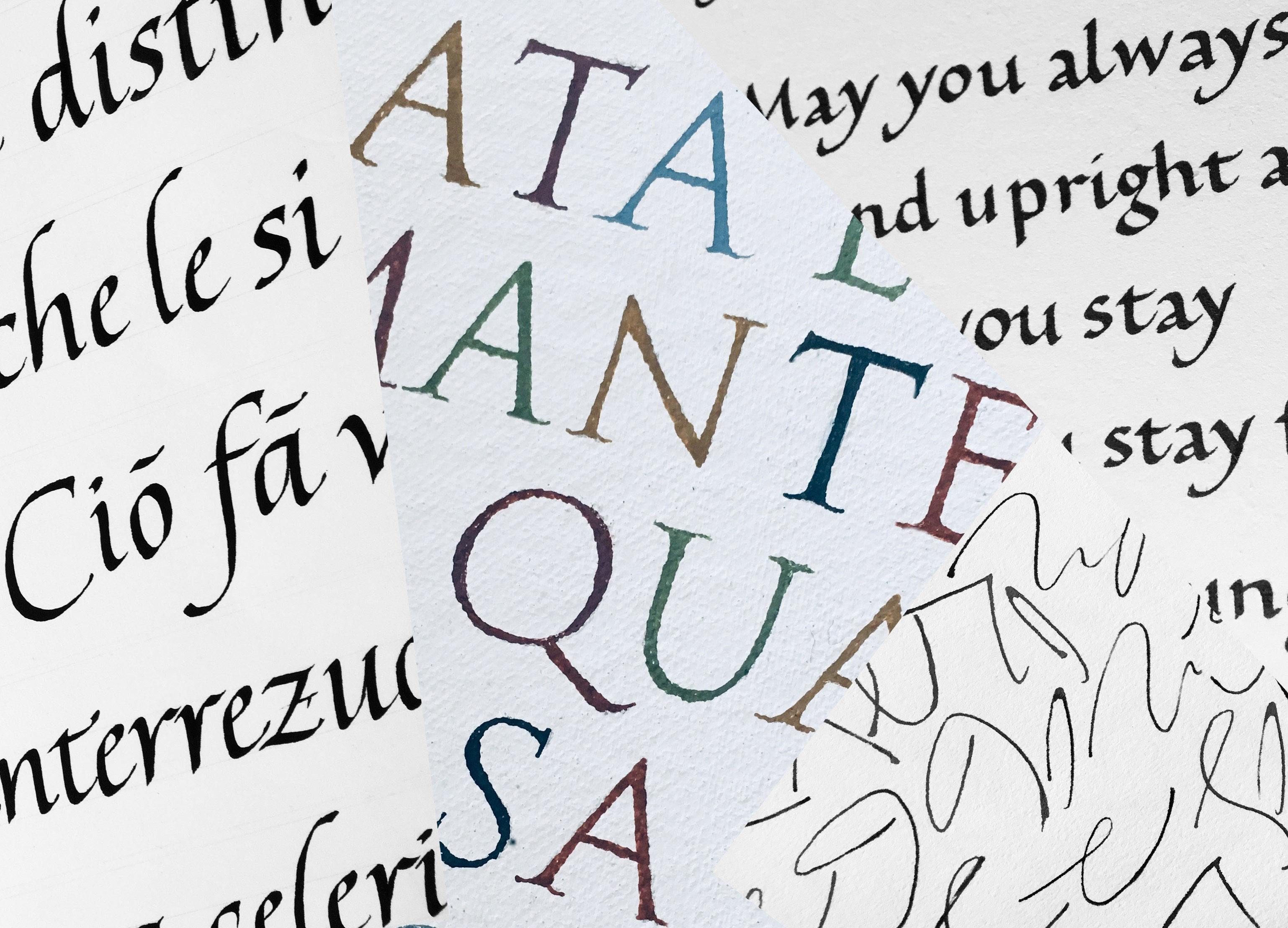My professional work includes a variety of Calligraphy and Lettering projects. My main interest is to explore the expressive potential of the written word through various media and writing implements including the brush, fabric, wood, stone, glass and collage.